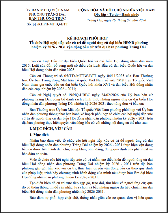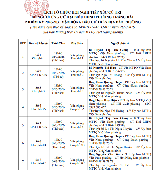 Hội nghị tiếp xúc cử tri để người ứng cử đại biểu HĐND phường nhiệm kỳ 2026 - 2031 Vận động bầu cử trên địa bàn phường Trảng Dài