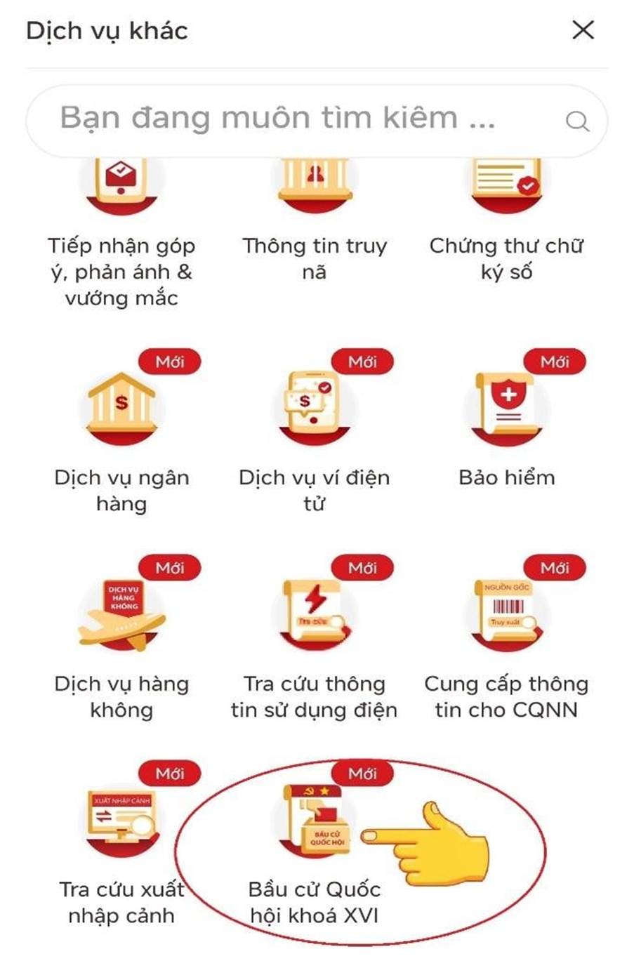 Bước 2: Chọn chức năng "Bầu cử Quốc hội khóa XVI".