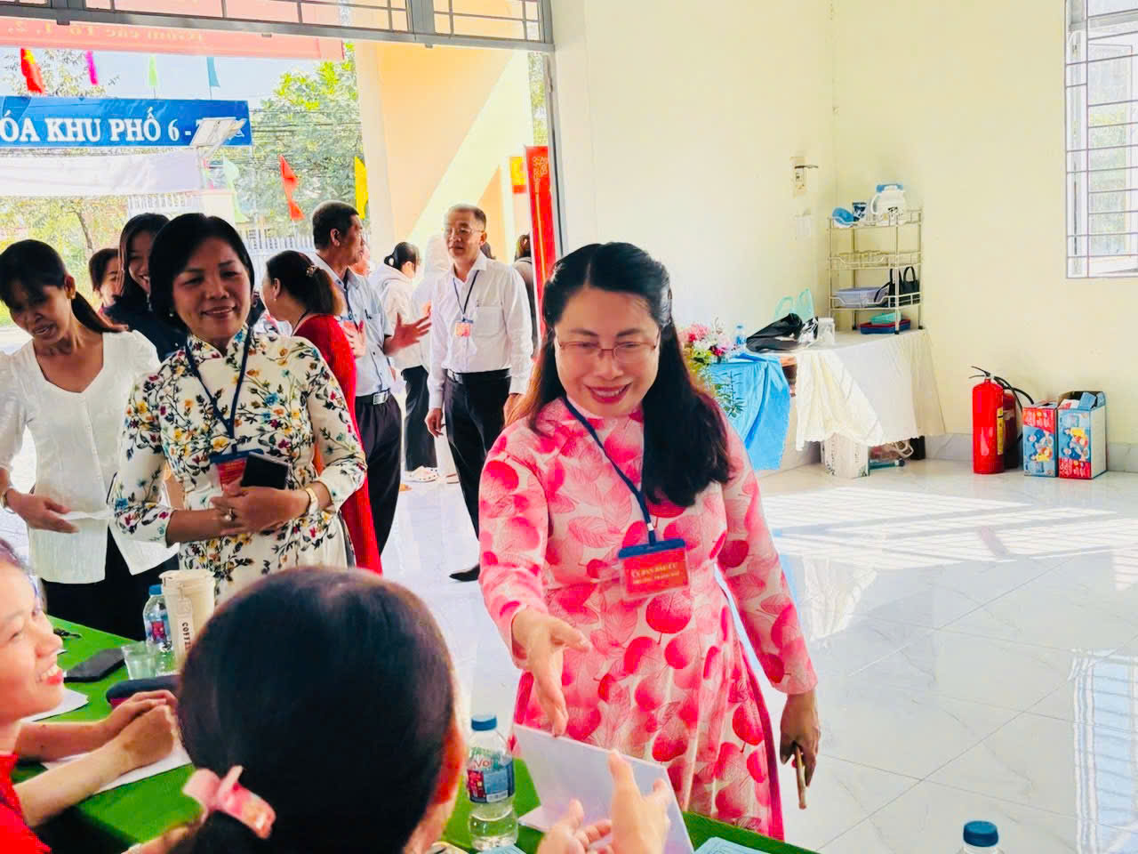 Đồng chí Nguyễn Thị Hồng Lương - UV BTV - Chủ nhiệm UBKT Đảng ủy phường thăm và động viên khu vực bỏ phiếu số 34 (Nhà văn hoá khu phố 6-7)