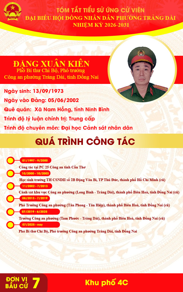 <p style="text-align:center;"><strong>TÓM TẮT TIỂU SỬ ỨNG CỬ VIÊN ĐẠI BIỂU HỘI ĐỒNG NHÂN DÂN PHƯỜNG TRẢNG DÀI NHIỆM KỲ 2026-2031&nbsp;</strong></p><p style="text-align:center;"><strong>ĐƠN VỊ BẦU CỬ SỐ 7</strong></p><figure class="image"><img style="aspect-ratio:638/1016;" src="https://trangdai.dongnai.gov.vn/uploads/trangdai/news/2026_03/pham-huy-hieu.jpg" width="638" height="1016" /></figure><figure class="image"><img style="aspect-ratio:638/1016;" src="https://trangdai.dongnai.gov.vn/uploads/trangdai/news/2026_03/giang-ngoc-huan.jpg" width="638" height="1016" /></figure><figure class="image"><img style="aspect-ratio:638/1016;" src="https://trangdai.dongnai.gov.vn/uploads/trangdai/news/2026_03/dang-xuan-kien.jpg" width="638" height="1016" /></figure><figure class="image"><img style="aspect-ratio:638/1016;" src="https://trangdai.dongnai.gov.vn/uploads/trangdai/news/2026_03/tran-khac-thang.jpg" width="638" height="1016" /></figure><figure class="image"><img style="aspect-ratio:638/1016;" src="https://trangdai.dongnai.gov.vn/uploads/trangdai/news/2026_03/phan-quang-thien.jpg" width="638" height="1016" /></figure>